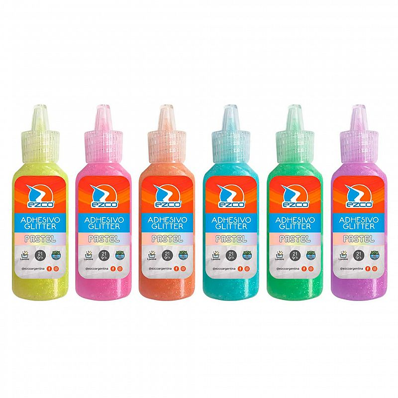 ADHESIVO CON GLITTER EZCO PASTEL x12