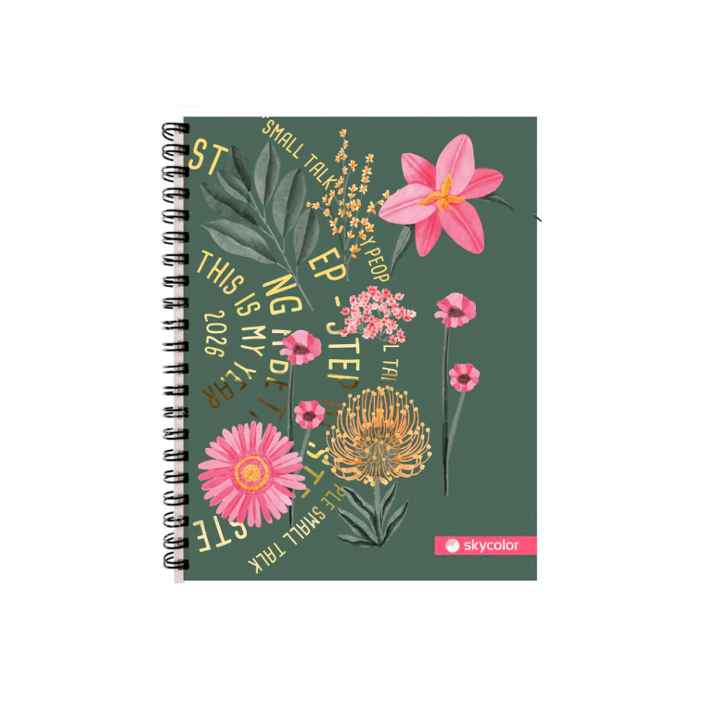 AGENDA SKYCOLOR FLQ 15X21 CON ELASTICO X368 PAGINAS - DIA POR PAGINA VERDE FLOREADO