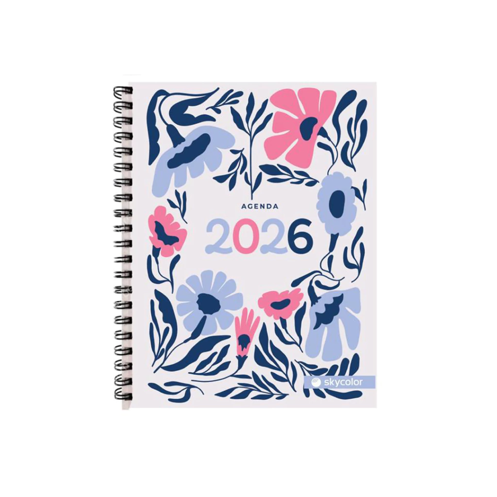 AGENDA SKYCOLOR FLQ 15X21 CON ELASTICO X368 PAGINAS - DIA POR PAGINA BCO/LILA FLOREADO