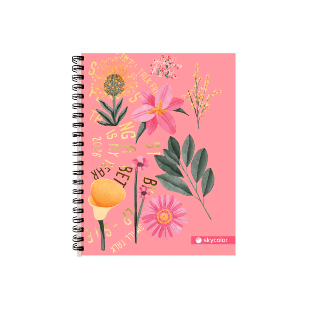 AGENDA SKYCOLOR FLQ 15X21 CON ELASTICO X368 PAGINAS - DIA POR PAGINA ROSA FLOREADO