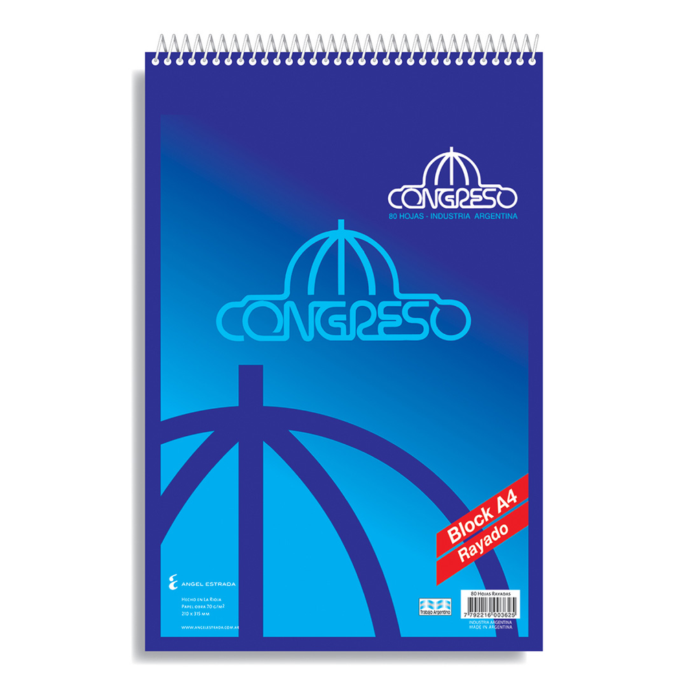 BLOCK C/ESPIRAL CONGRESO A4 RAYADO X80 HJS
