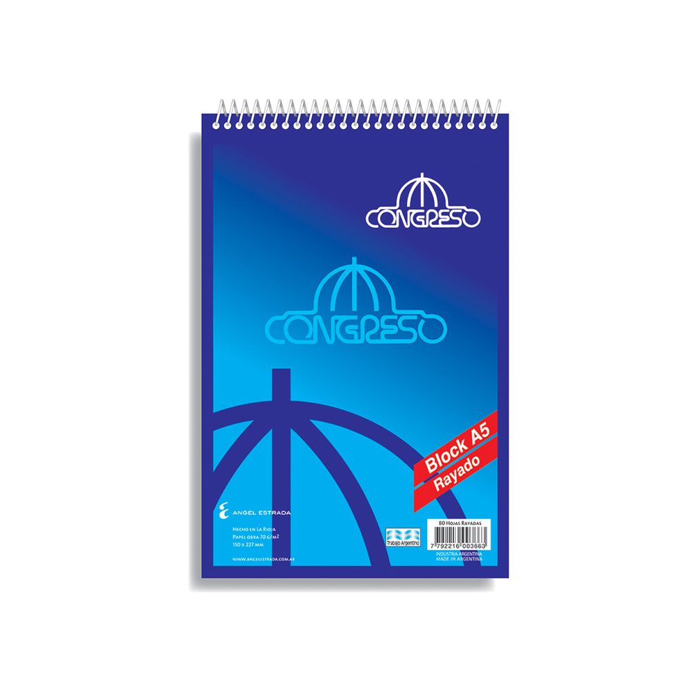 BLOCK C/ESPIRAL CONGRESO ESQUELA RAYADO X 80 HJS. (A5)