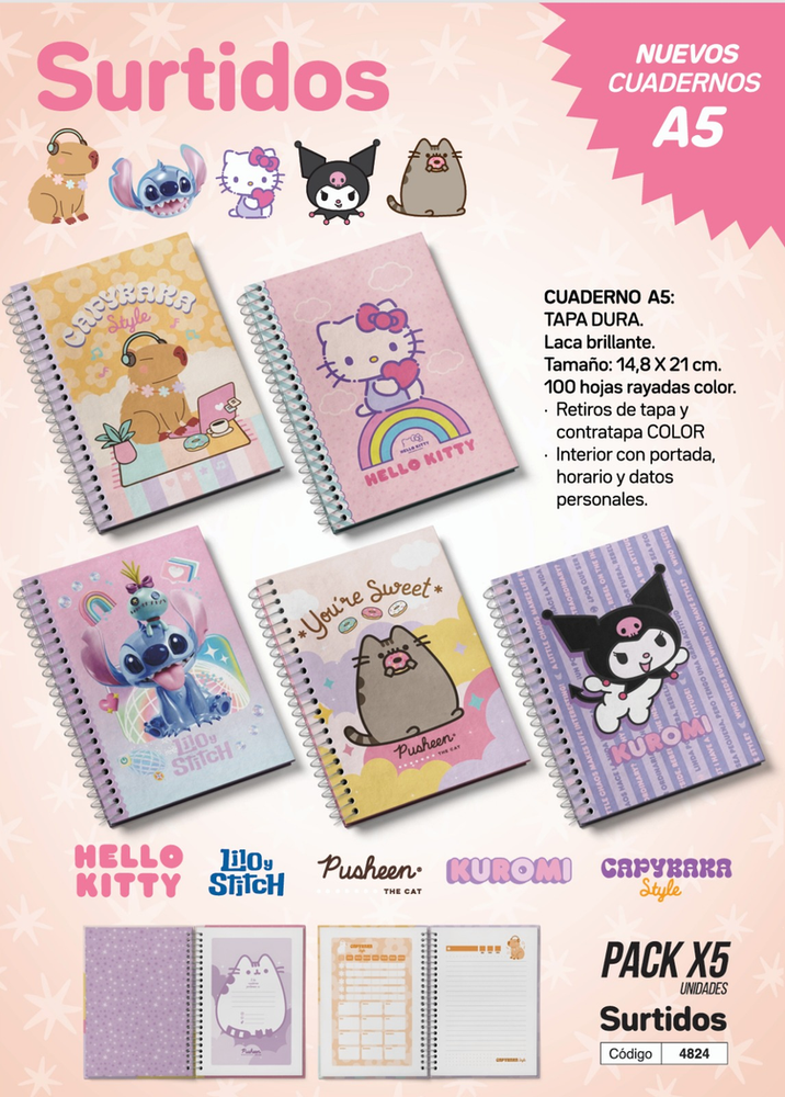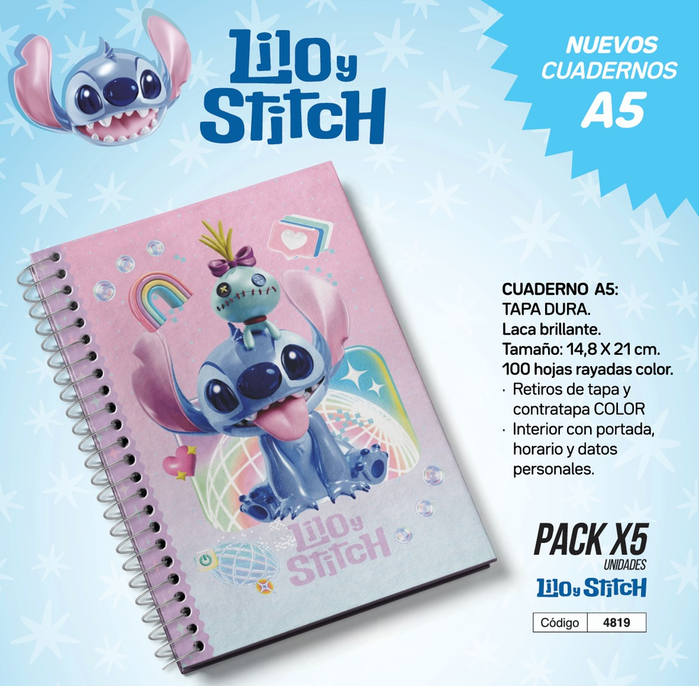 CUADERNO A5 CON ESPIRAL TAPA DURA X100 HJS RAYADA LILO Y STITCH