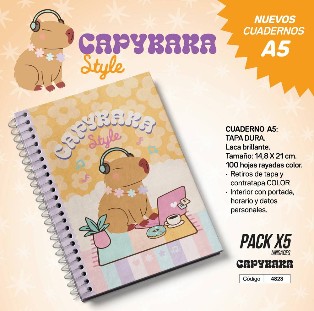 CUADERNO A5 CON ESPIRAL TAPA DURA X100 HJS RAYADA CAPYBARA