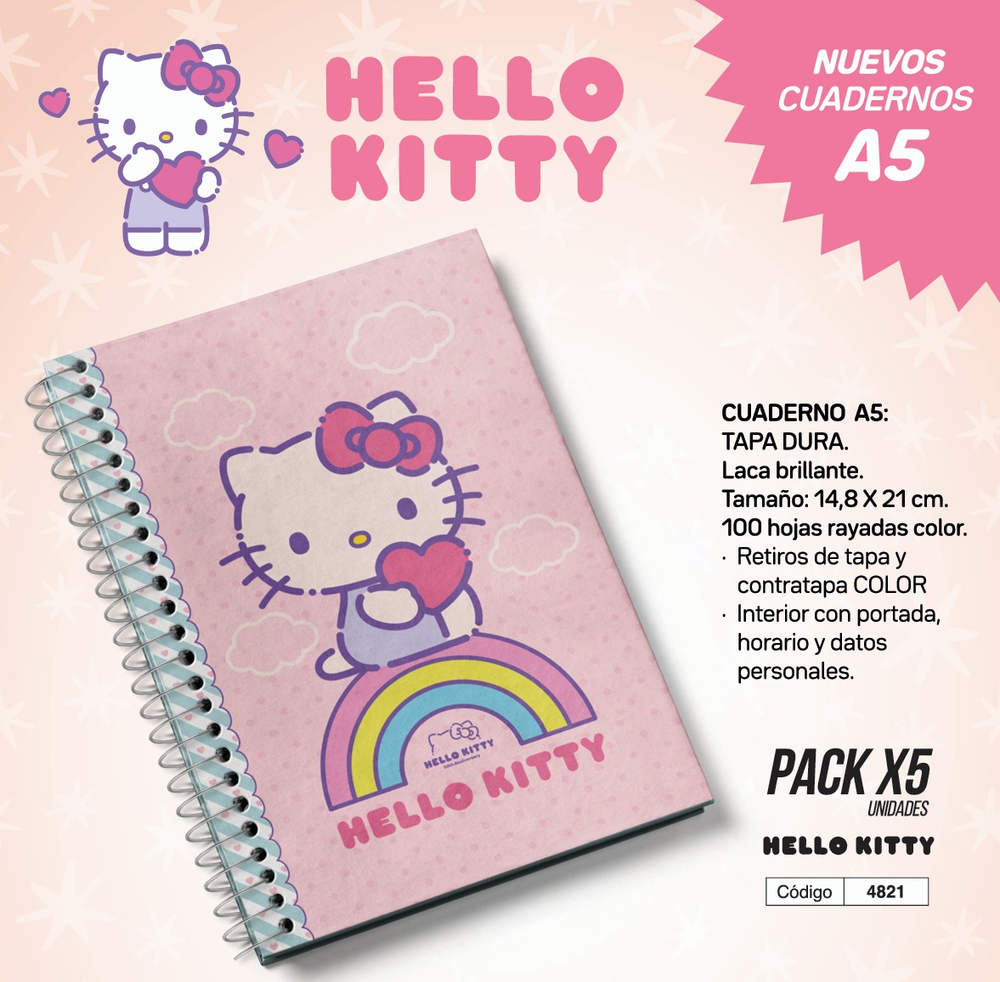 CUADERNO A5 CON ESPIRAL TAPA DURA X100 HJS RAYADA HELLO KITTY