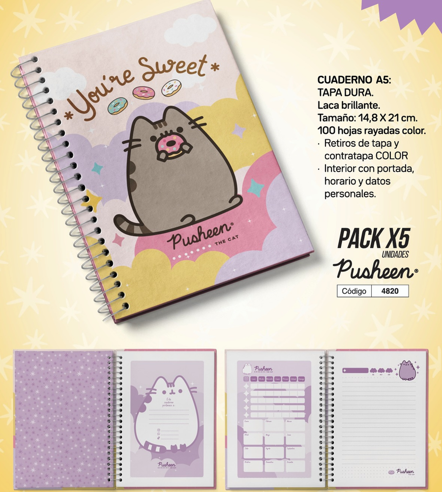 CUADERNO A5 CON ESPIRAL TAPA DURA X100 HJS RAYADA PUSHEEN