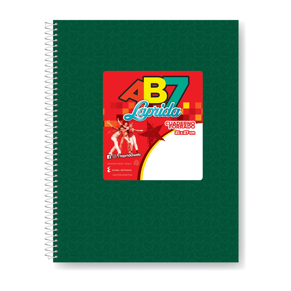 CUADERNO LAPRIDA AB7 CON ESPIRAL CUADRO X100 HJS VERDE