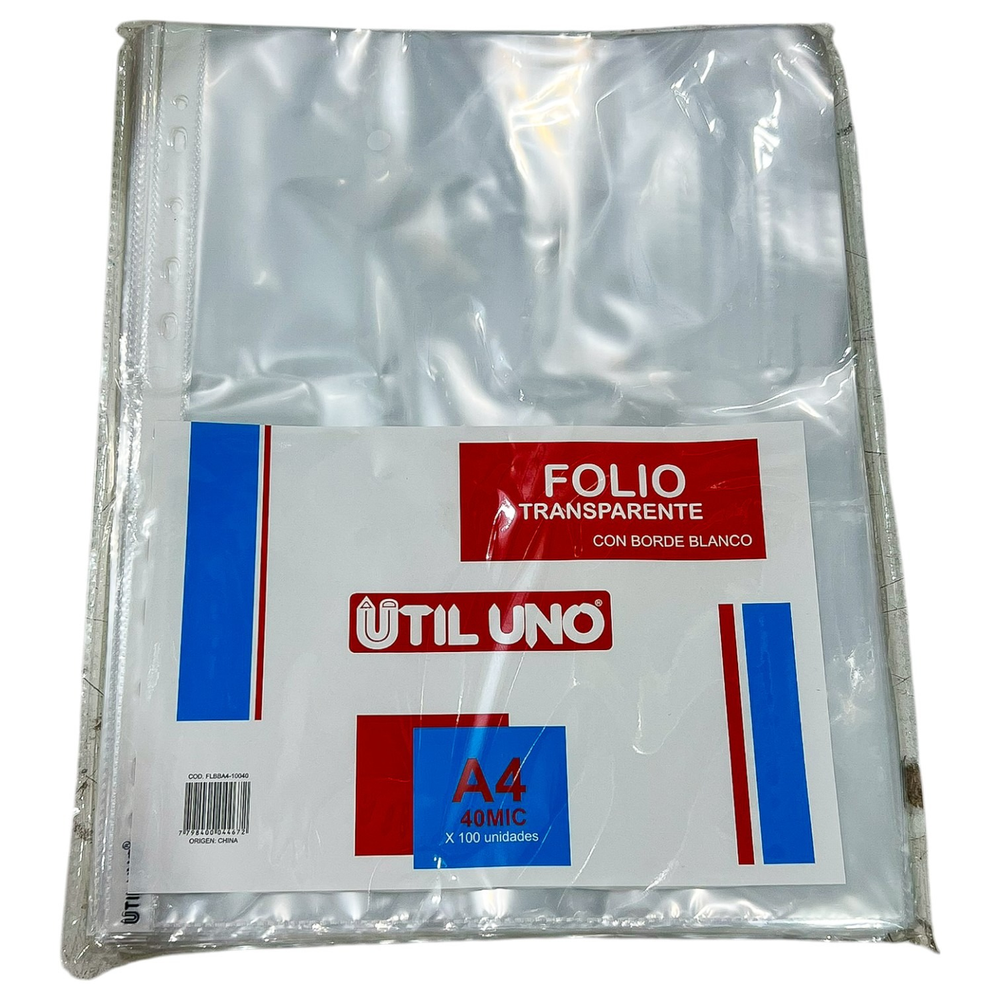 FOLIO UTIL UNO C/BORDE BLANCO A4 ECONOMICO 40 MIC. X100