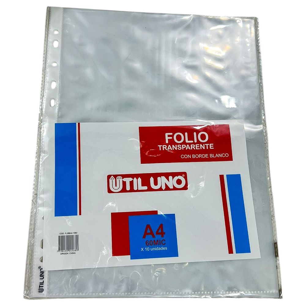FOLIO UTIL UNO C/BORDE BLANCO A4 SEMI-PESADO 60 MIC. X100