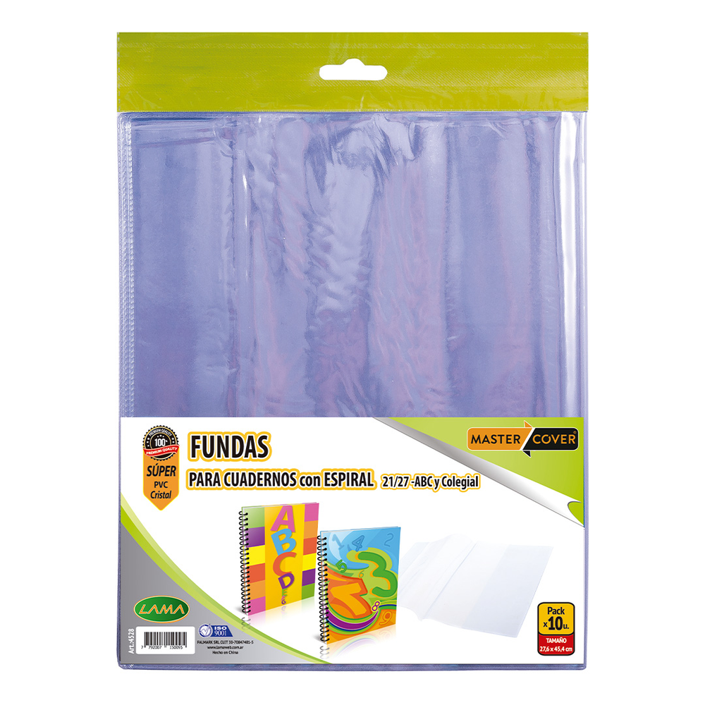 FUNDA LAMA PVC P/CUADERNO 21X27 C/ESPIRAL X10 UN,