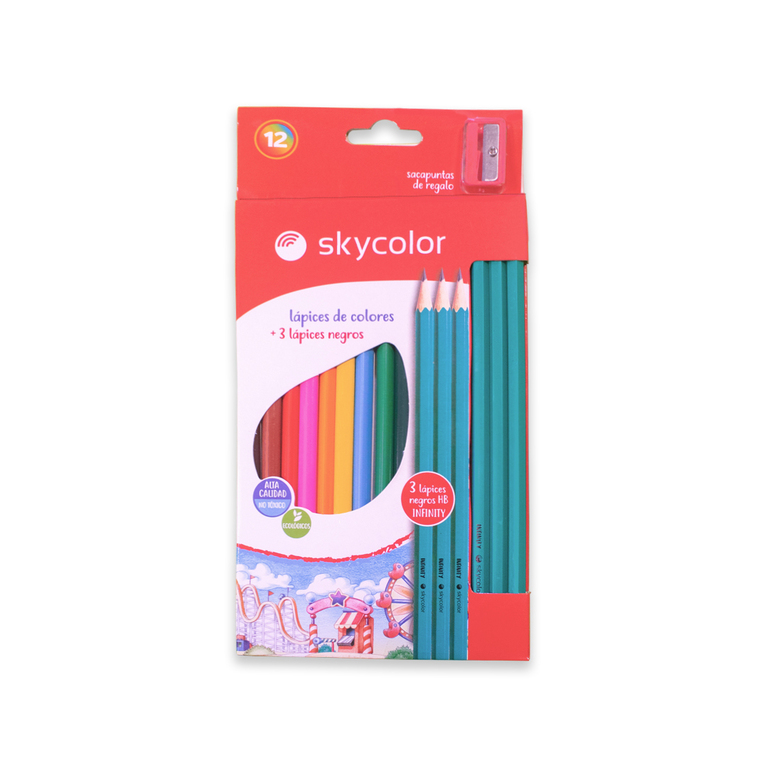 LAPIZ COLOR SKY COLOR X12 TRIANGULAR +3 LAPIZ NEGRO + SACAP.