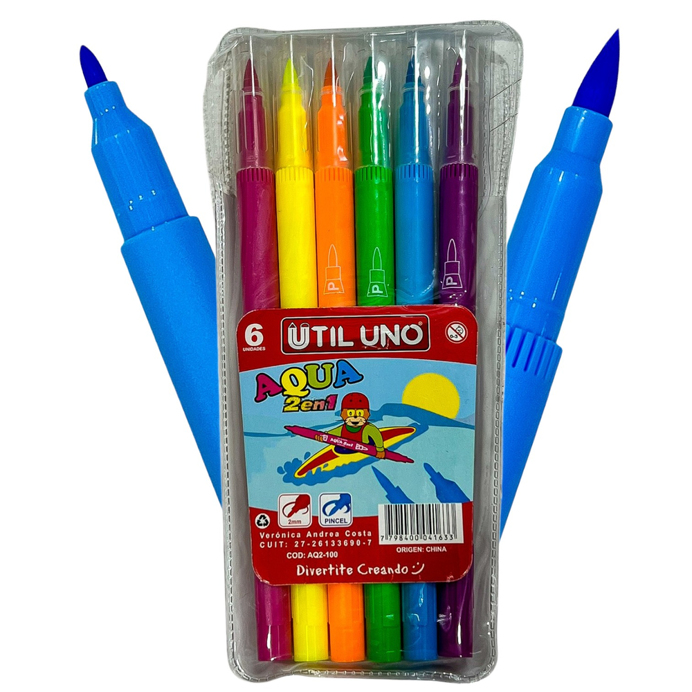 MARCADOR ESCOLAR UTIL UNO DOBLE PUNTA ( PINCEL Y FIBRA)