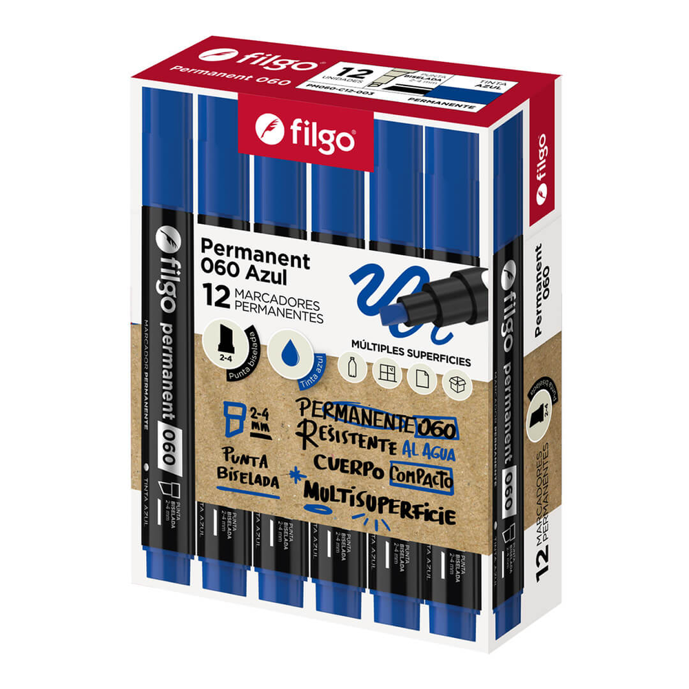 MARCADOR FILGO PERMANENTE 060 PTA CHATA AZUL