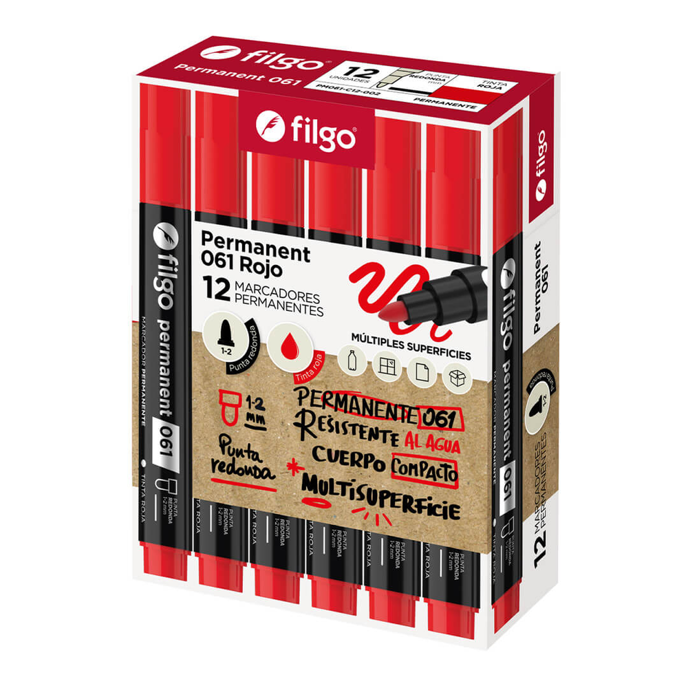 MARCADOR FILGO PERMANENTE 061 PTA REDONDA ROJO