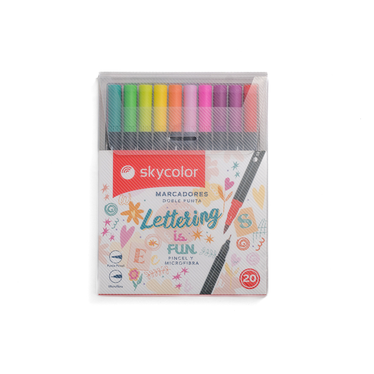 MARCADOR SKY COLOR DRAW DOBLE PUNTA PINCEL+MICRO X20