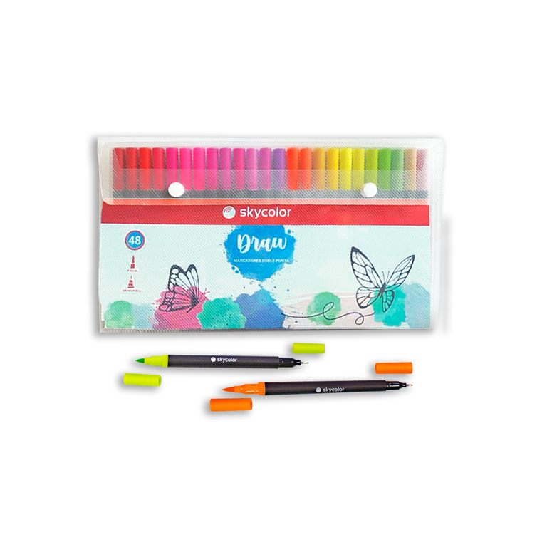 MARCADOR SKY COLOR DRAW DOBLE PUNTA PINCEL+MICRO X48