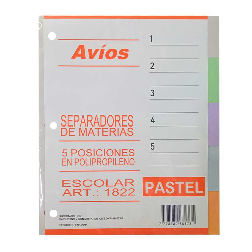 SEPARADOR AVIOS ESCOLAR 5 POSICIONES PP PASTEL