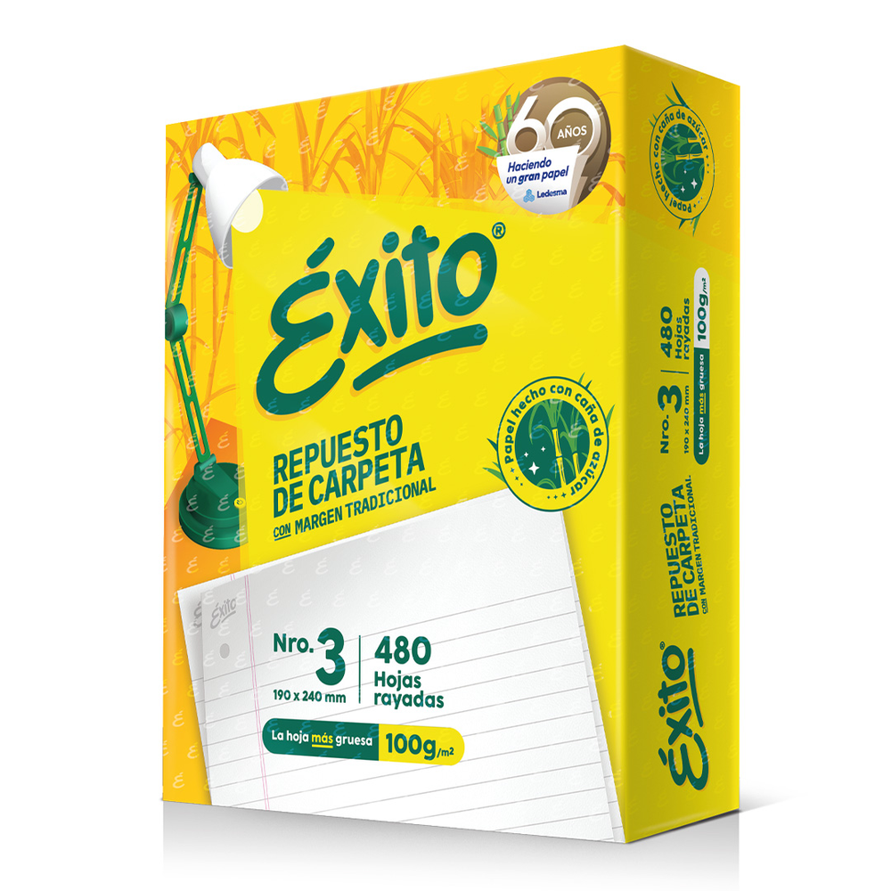 REPUESTO EXITO N3 TRADICIONAL 480 HOJAS RAYADO x5 unidades