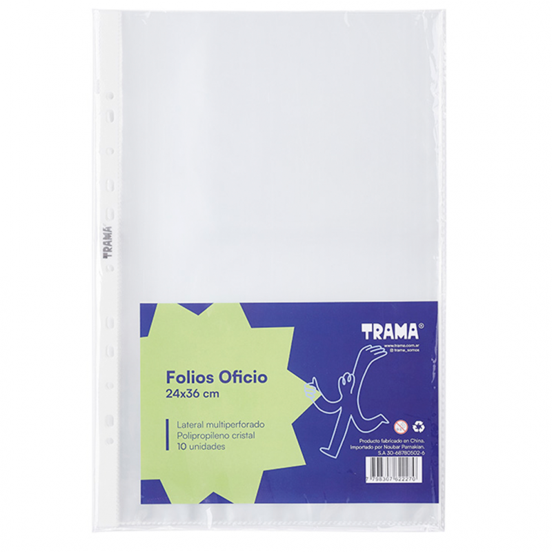 FOLIO TRAMA OFICIO POLIPROPILENO X 10 UNID (50 MIC)