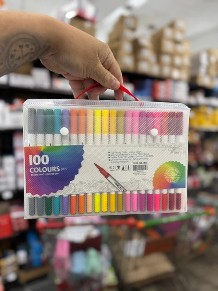 marcador doble punta , de un lado pincel y del otro microfibra.