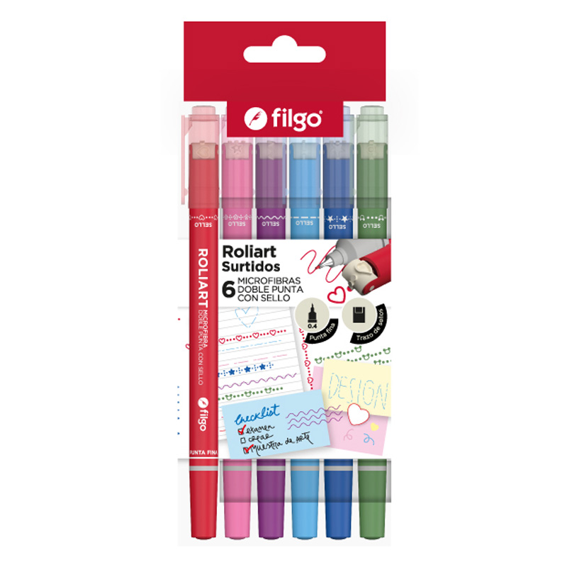 MICROFIBRA FILGO DOBLE PUNTA CON SELLO; ROLIART ESTUCHE X6 SURTIDO
